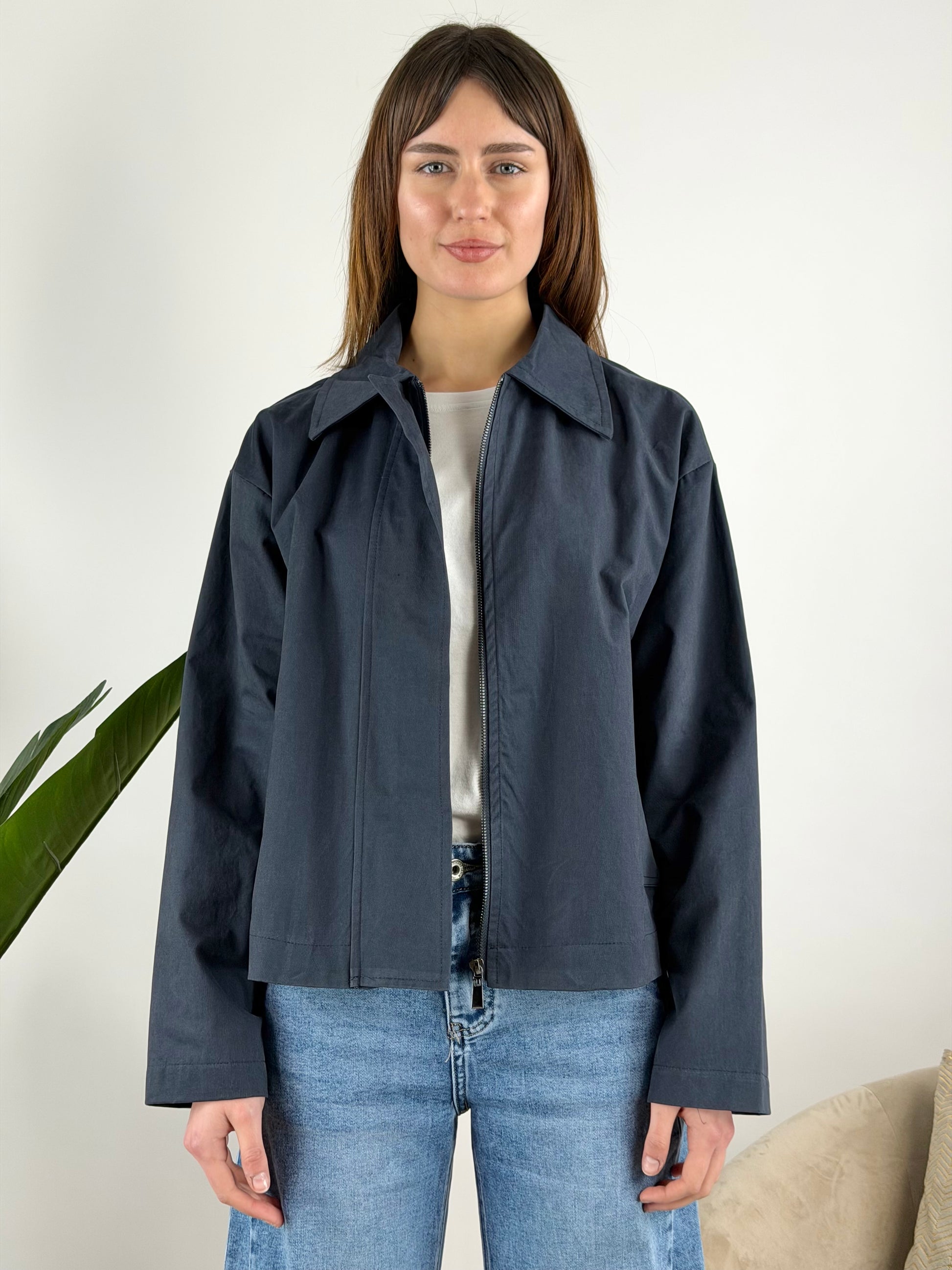 - Giubbino in gabardina di cotone con zip e tasche laterali