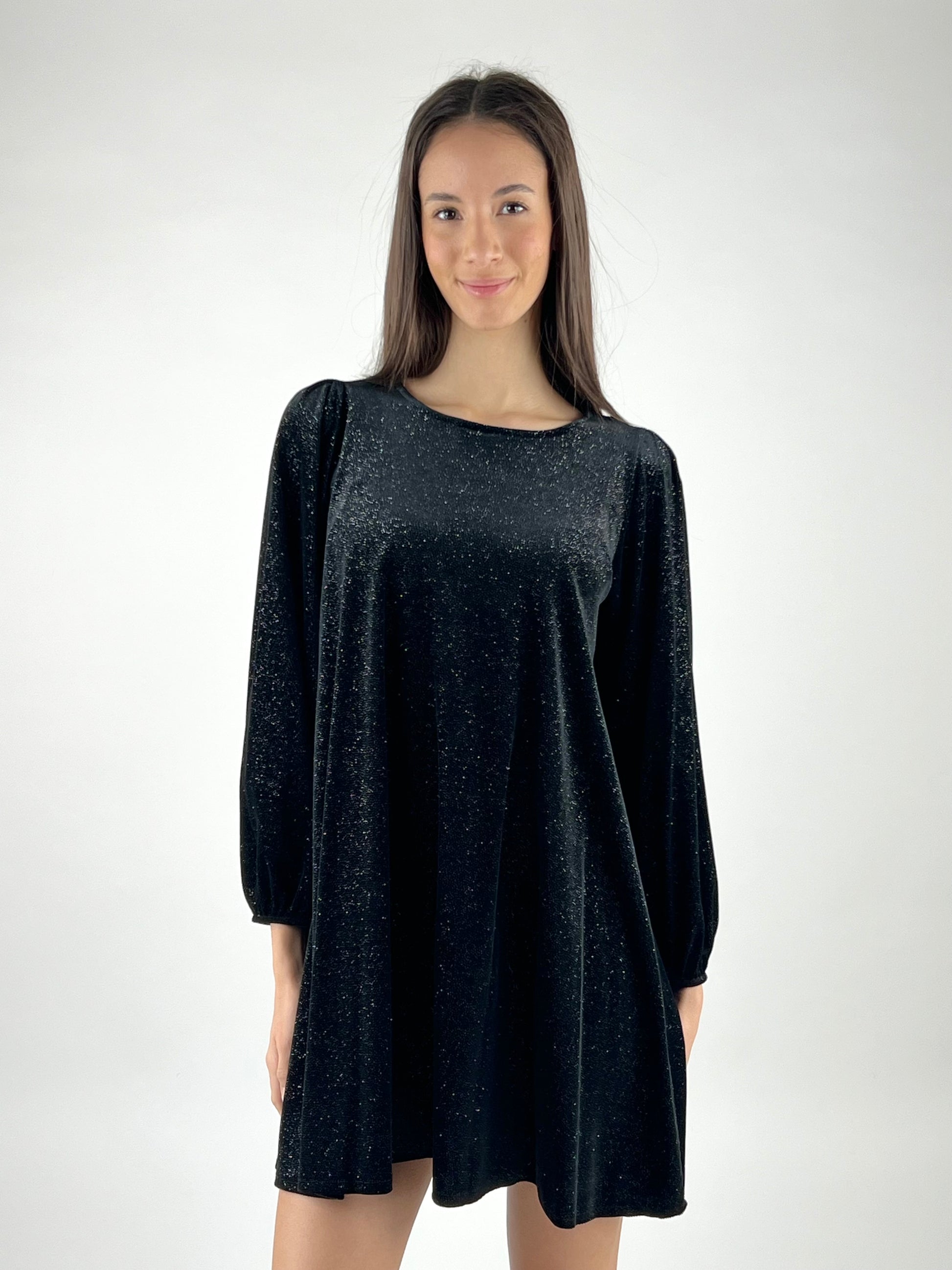 - Abito in ciniglia e glitter con manica lunga ed elastico al polso