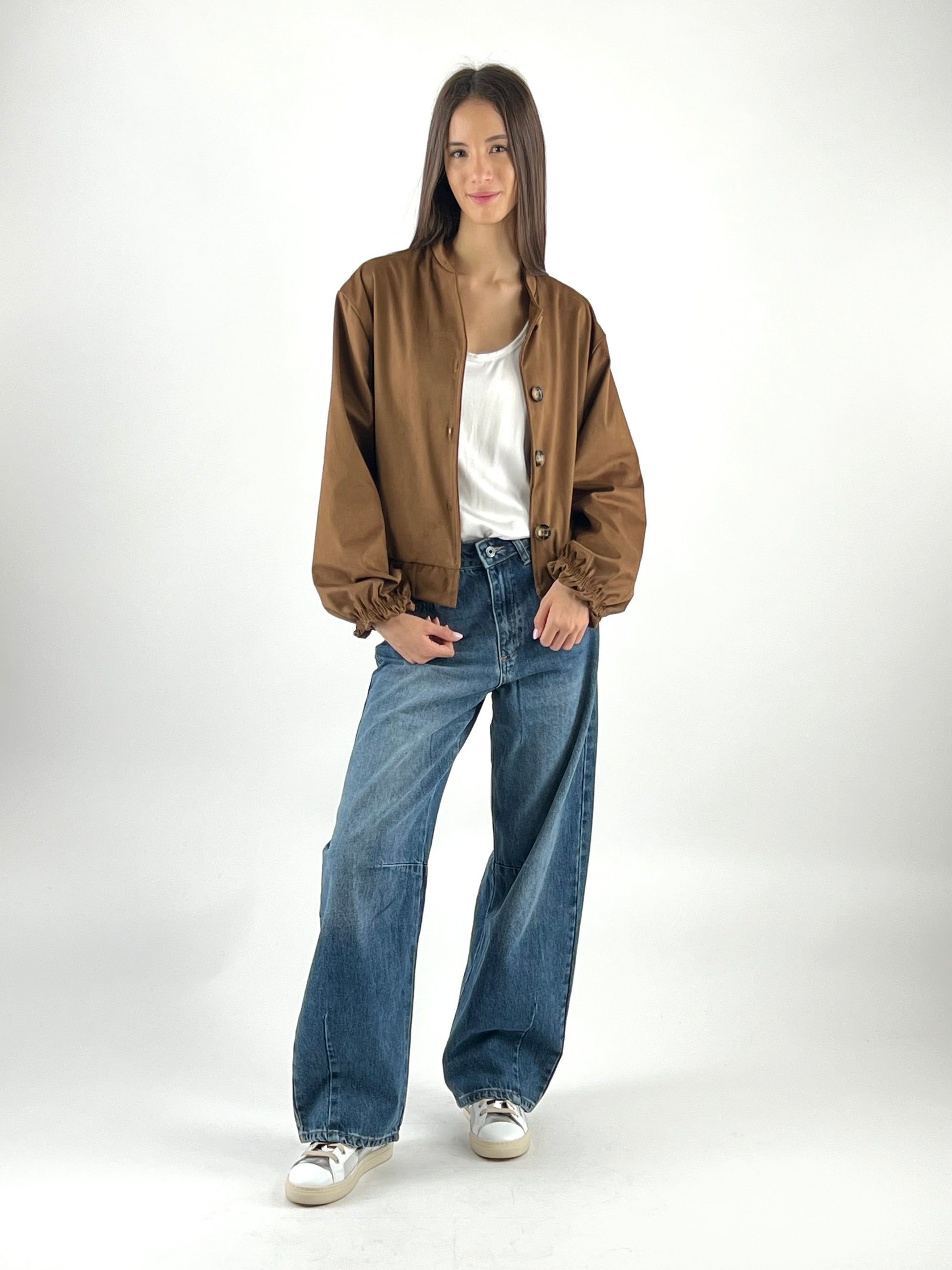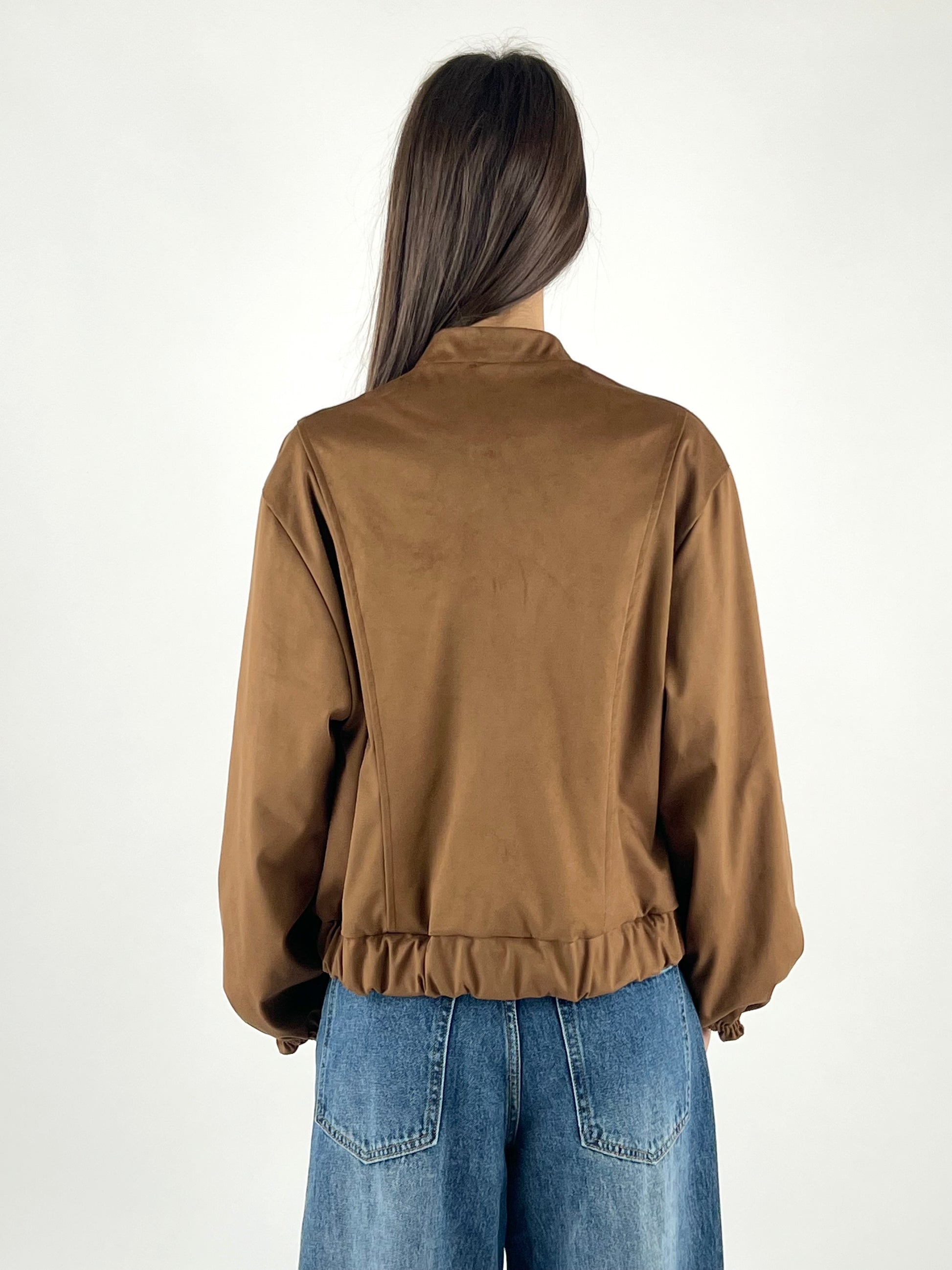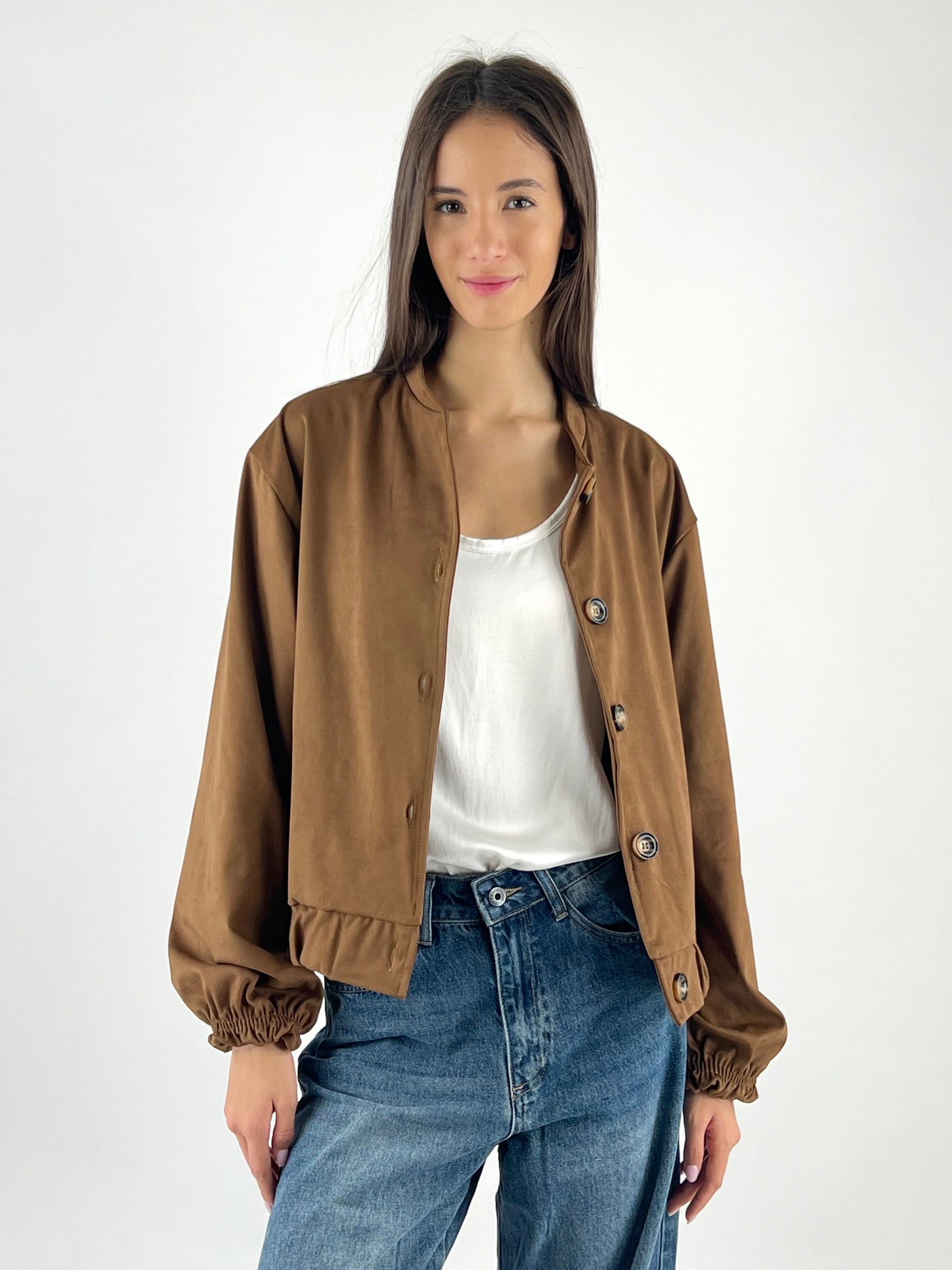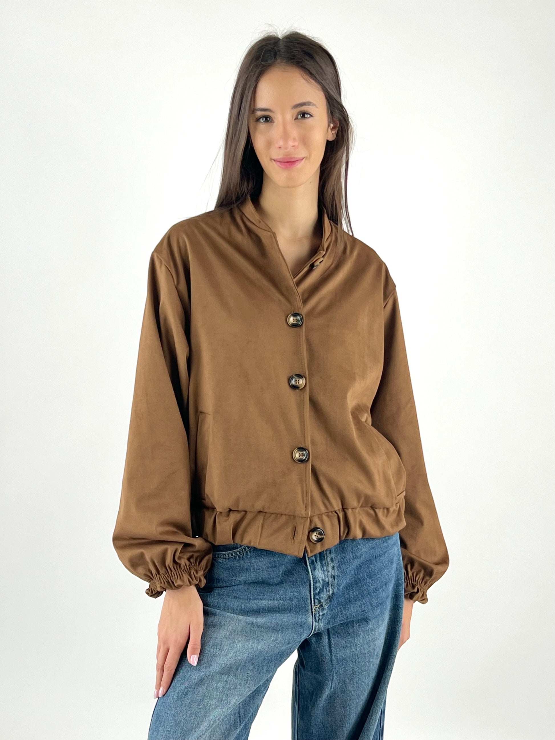 - Bomberino in ecodaineto con bottoni centrali, tasche laterali, elastico al fondo e ai polsi
