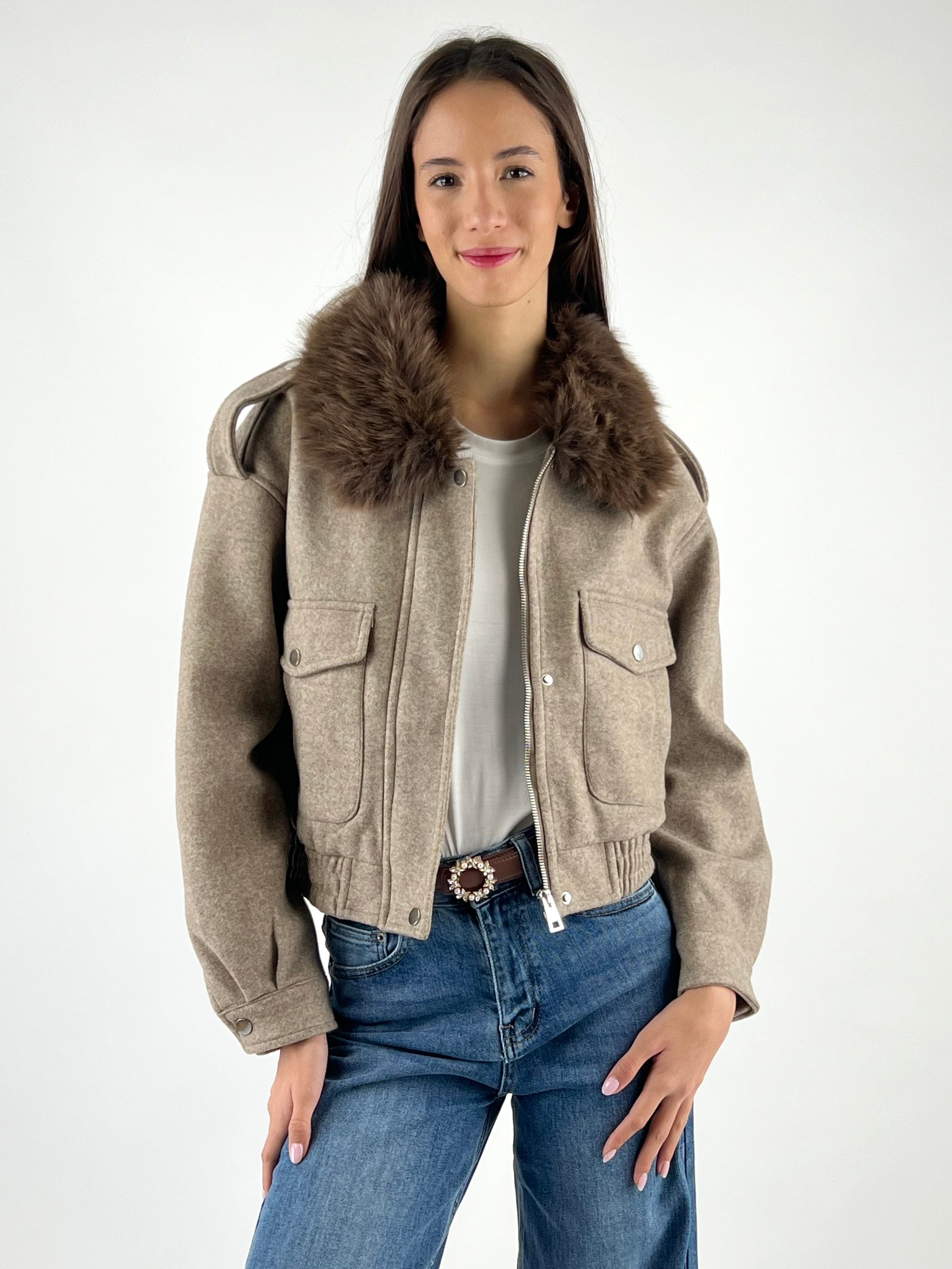 - Bomberino con tasche frontali, pattine, bordo elastico e coll in ecopelliccia