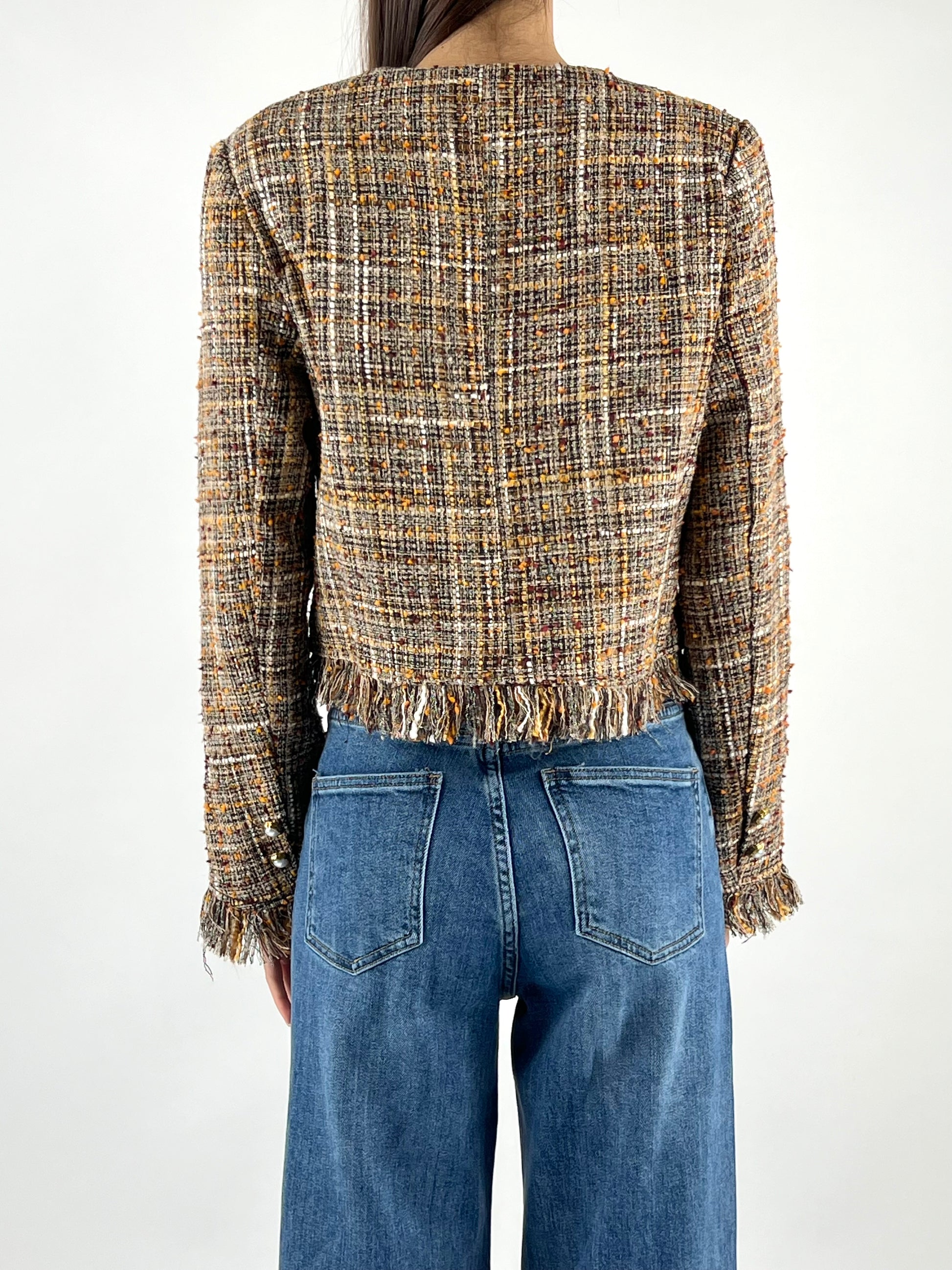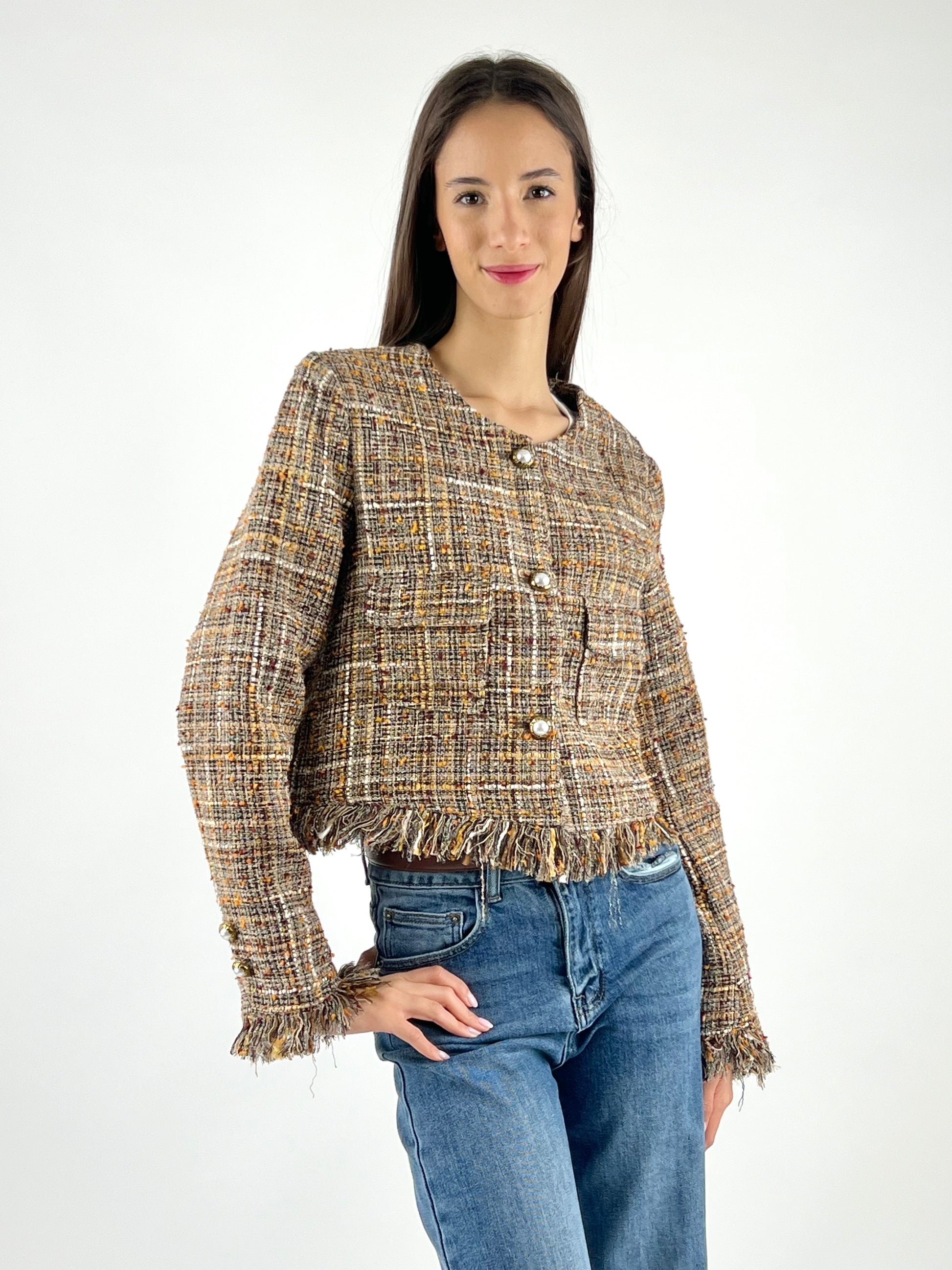 - Chanel con bottoni gioiello, frangette e taschini frontali