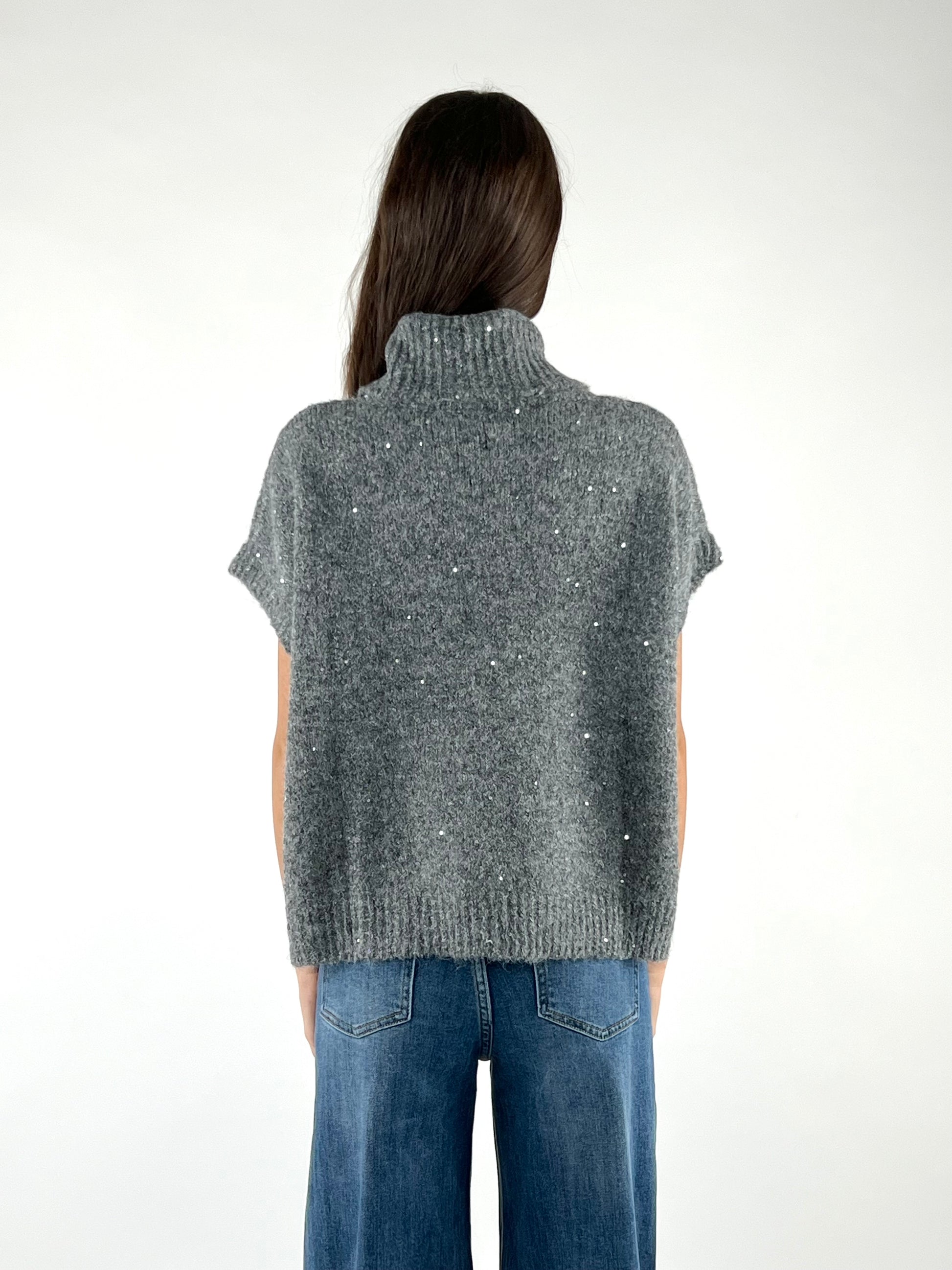 - Gilet con collo a dolcevita, manica corte, filo lurex e micropaillettes
