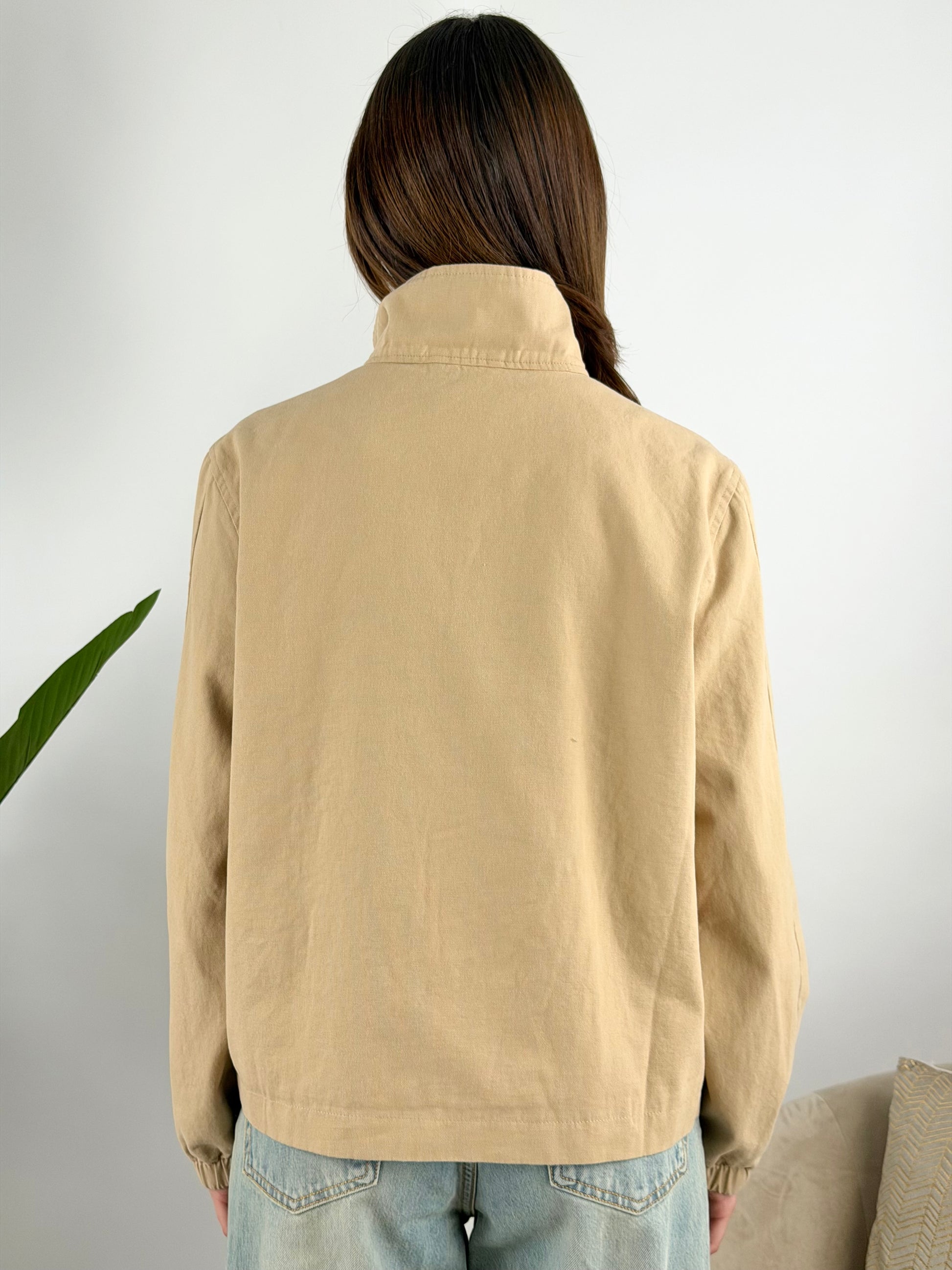 - Giubbino in cotone con collo alla Coreana, tasche laterali ed elastico sui polsi