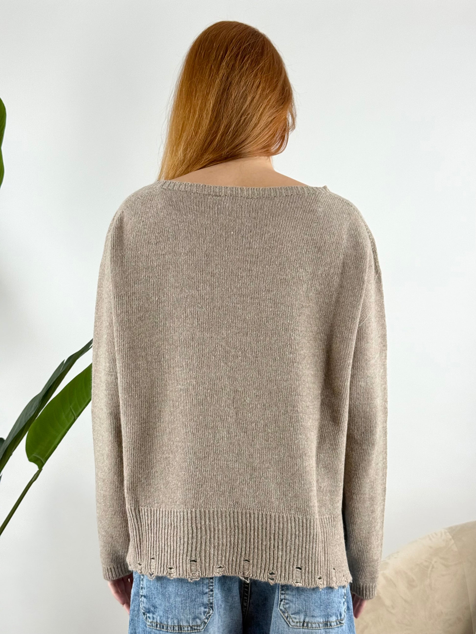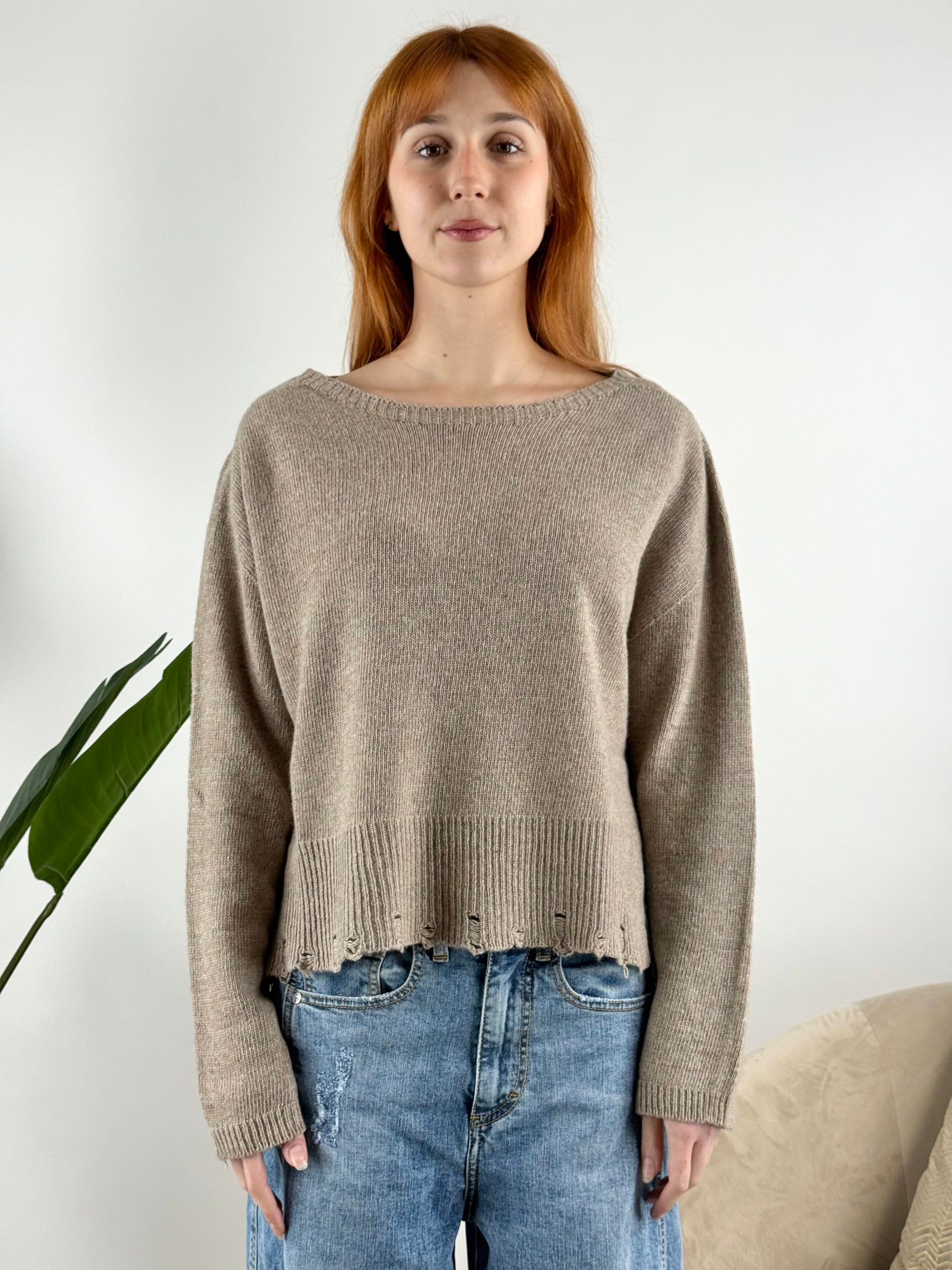 • Maglia asimmetrica con scollo a barca e rotture al fondo