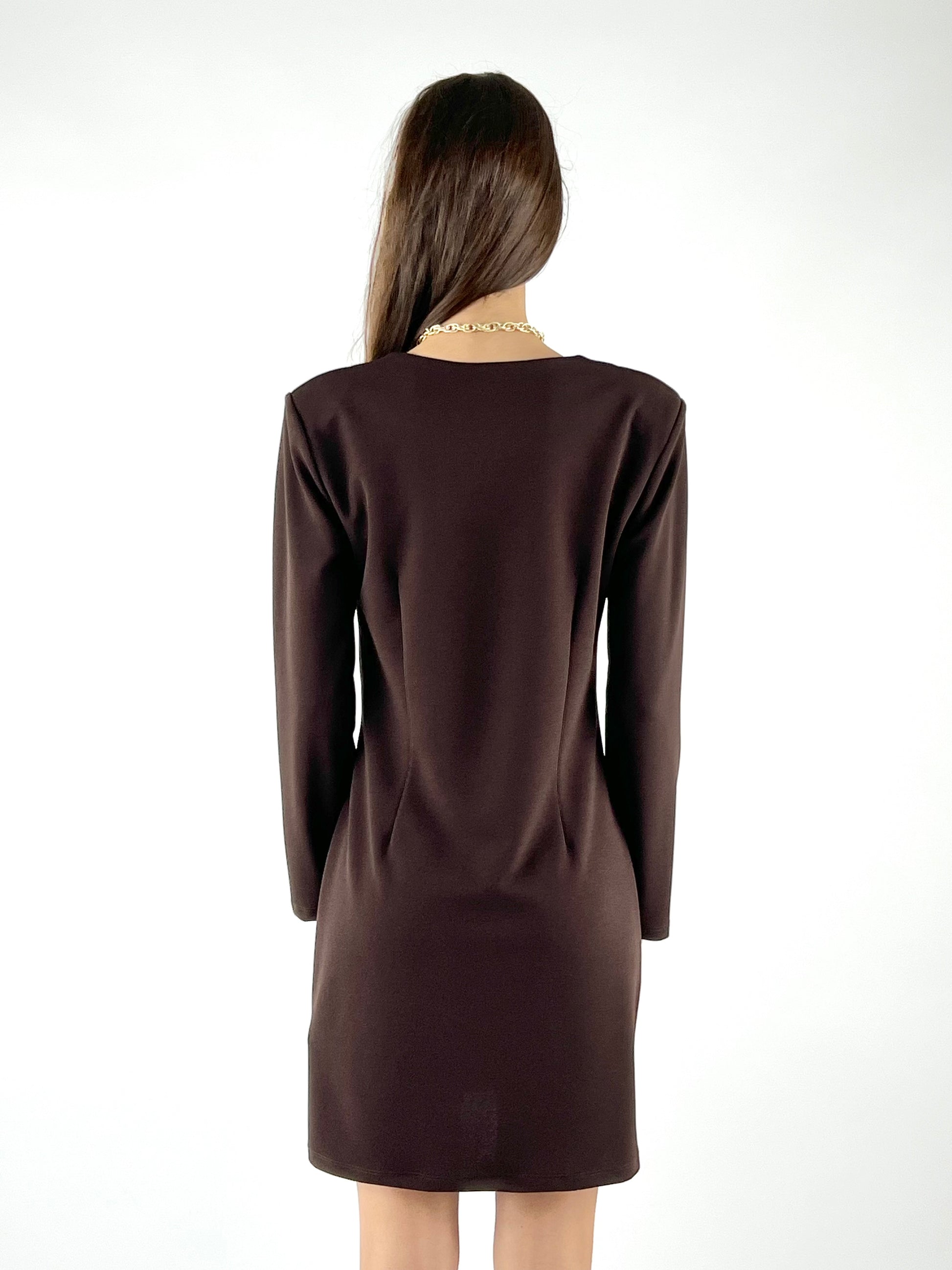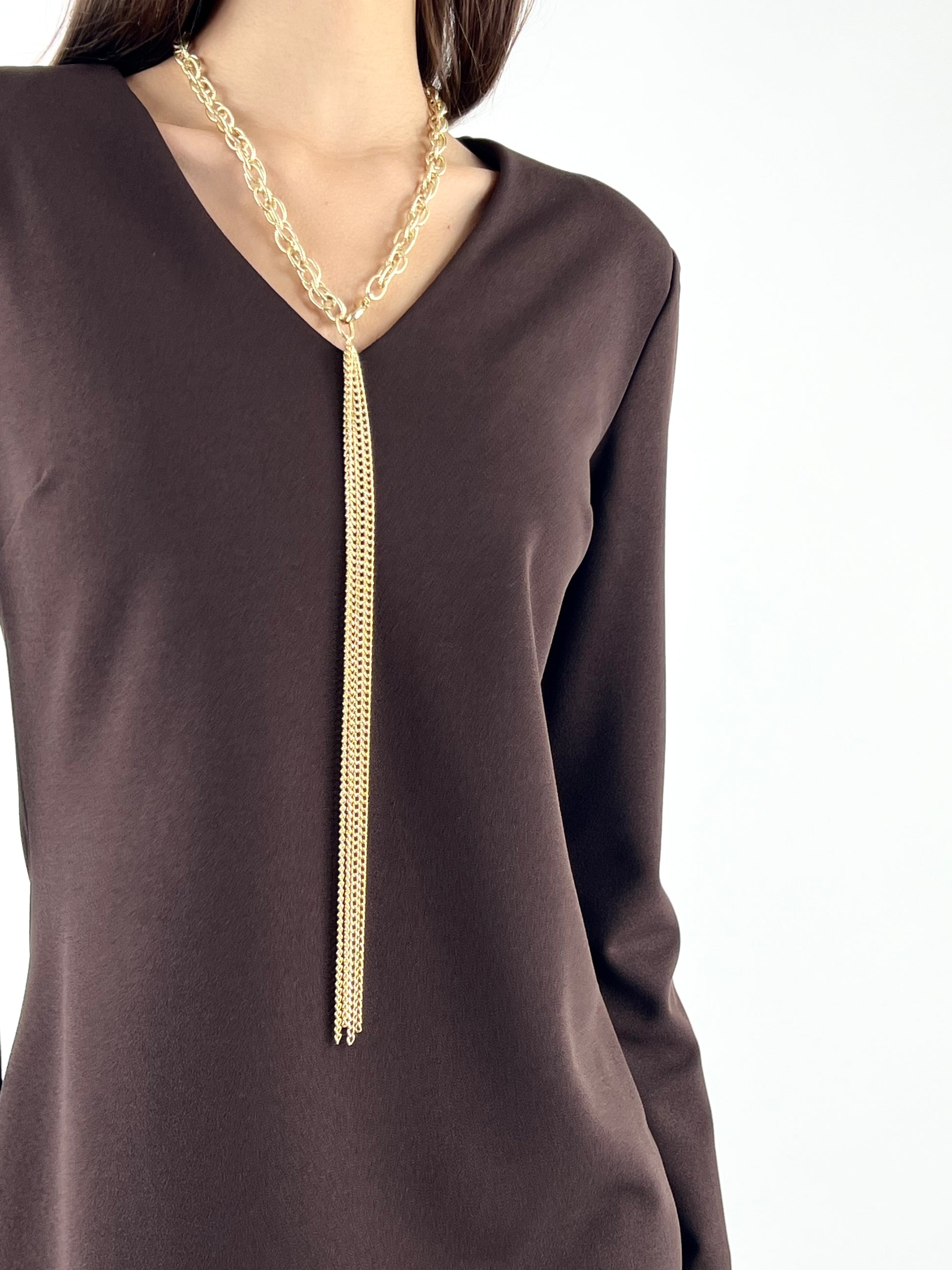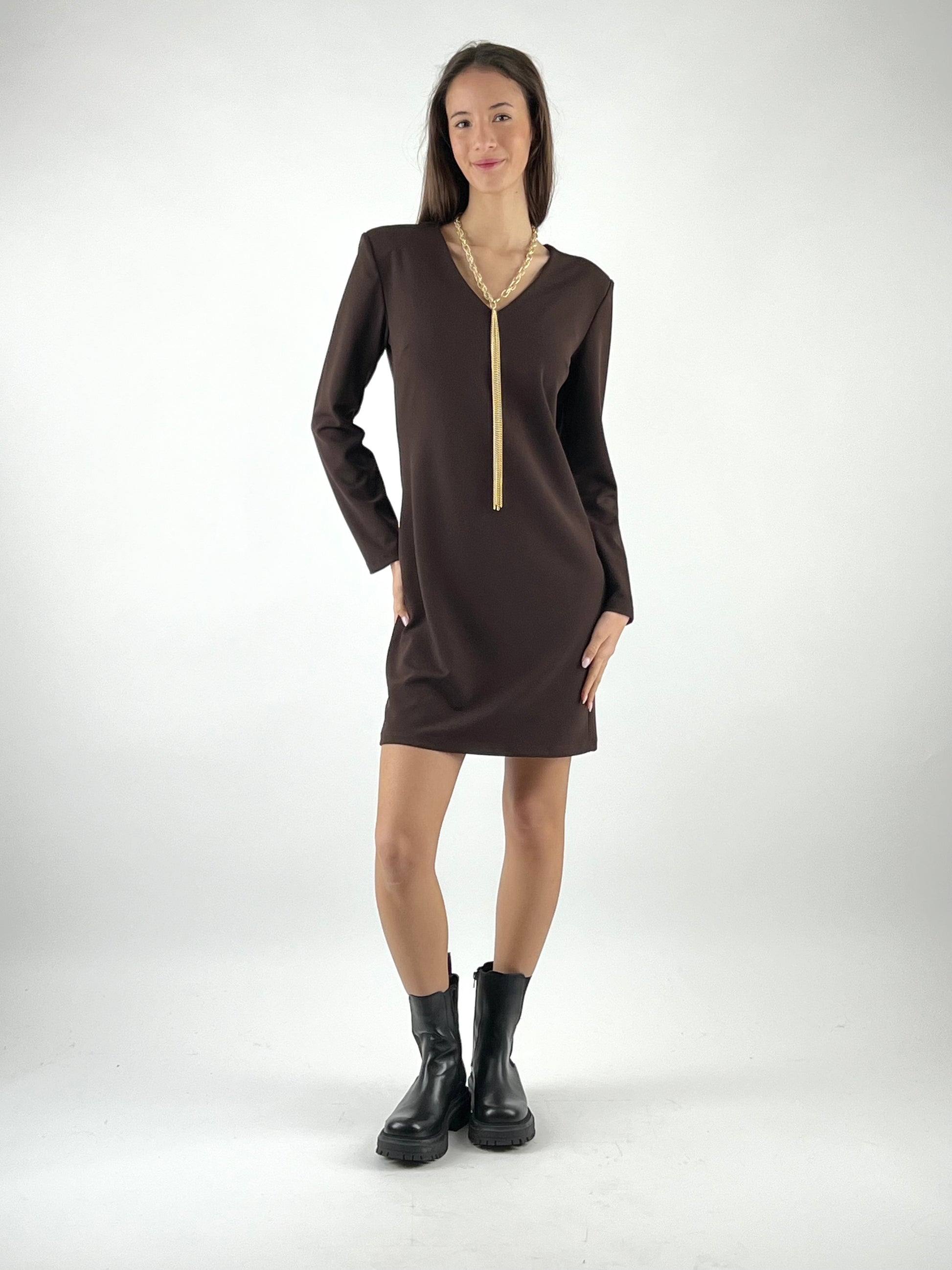 - Abito con scollo a punta, spalla leggermente imbottita e collana