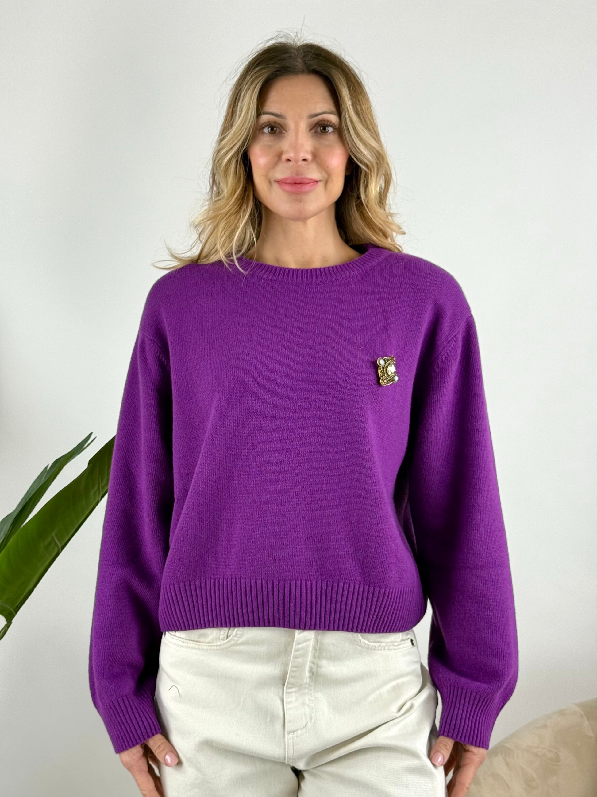 • Maglia girocollo con spalline e spilla