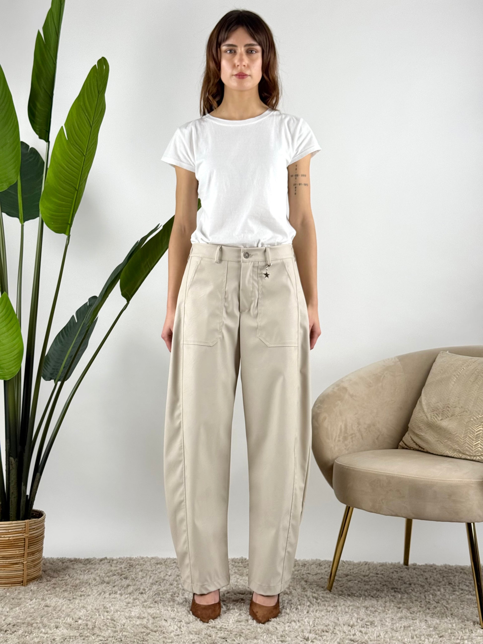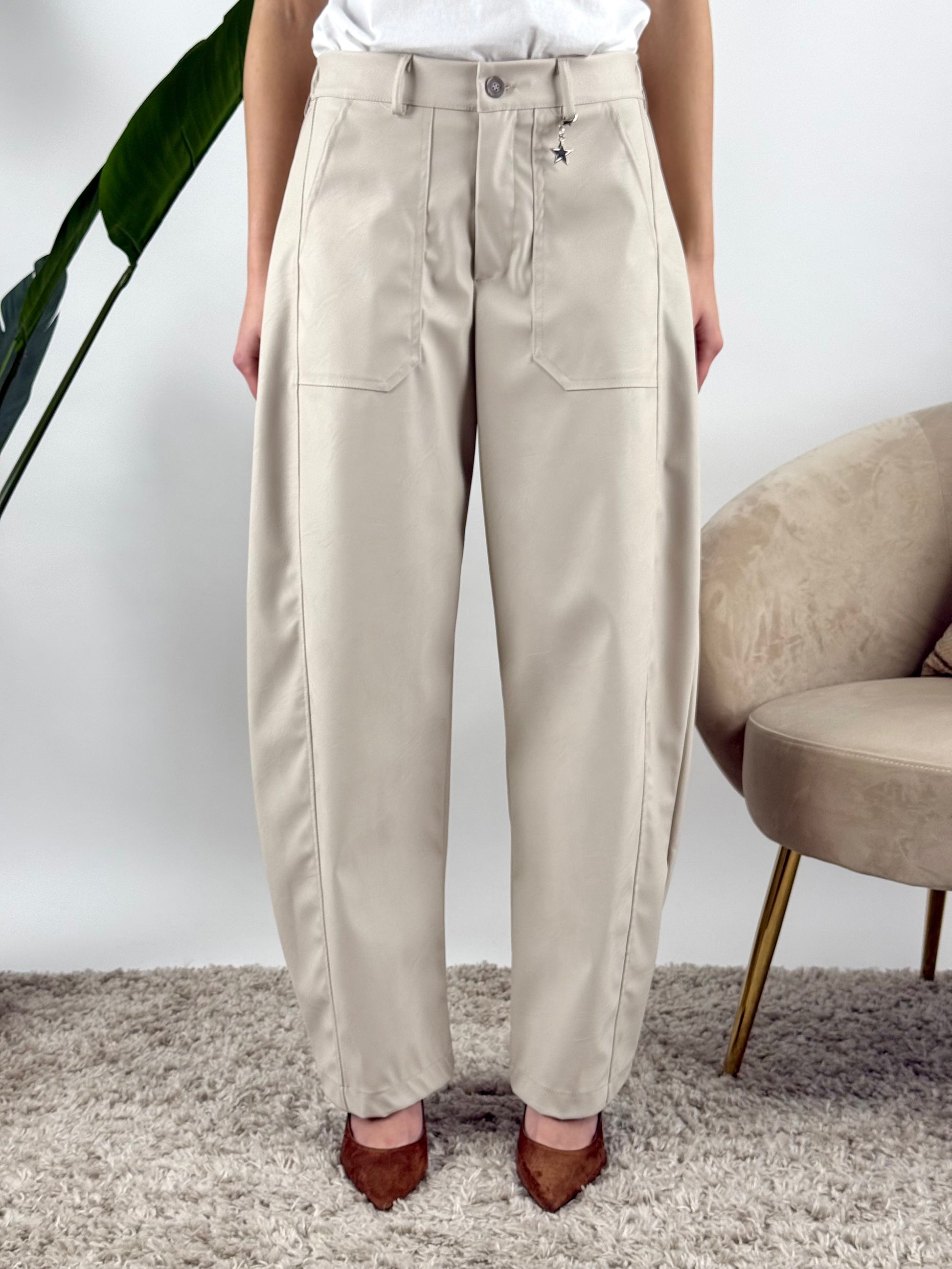 - Pantalone iin ecopelle modello Barrel con elastico posteriore