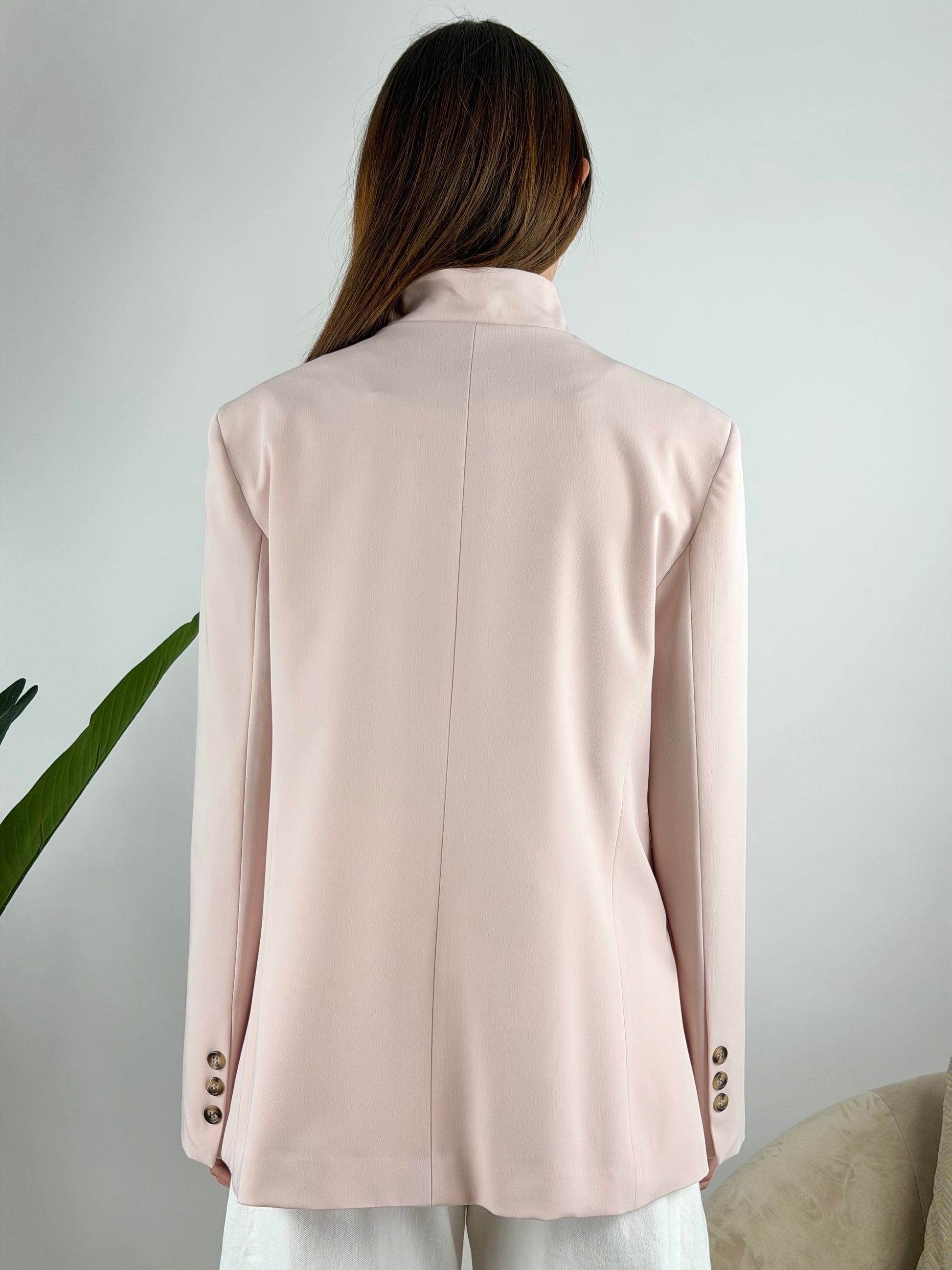 - Giacca con collo alla coreana con chiusura a incrocio