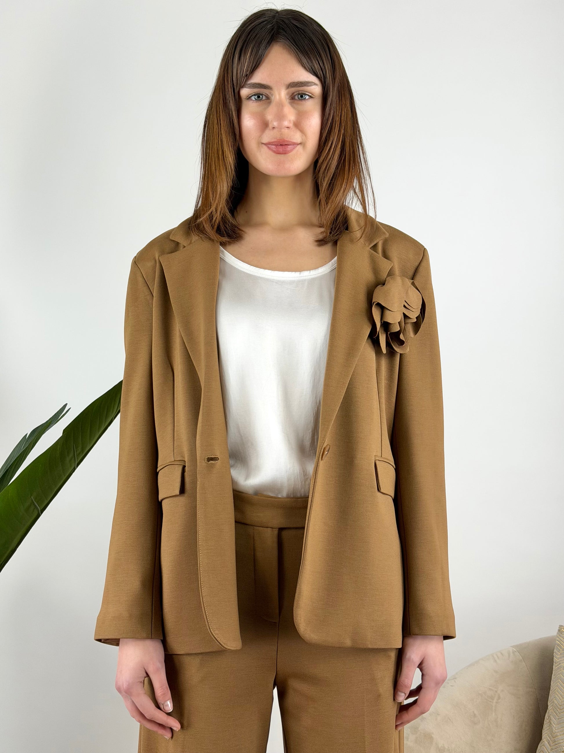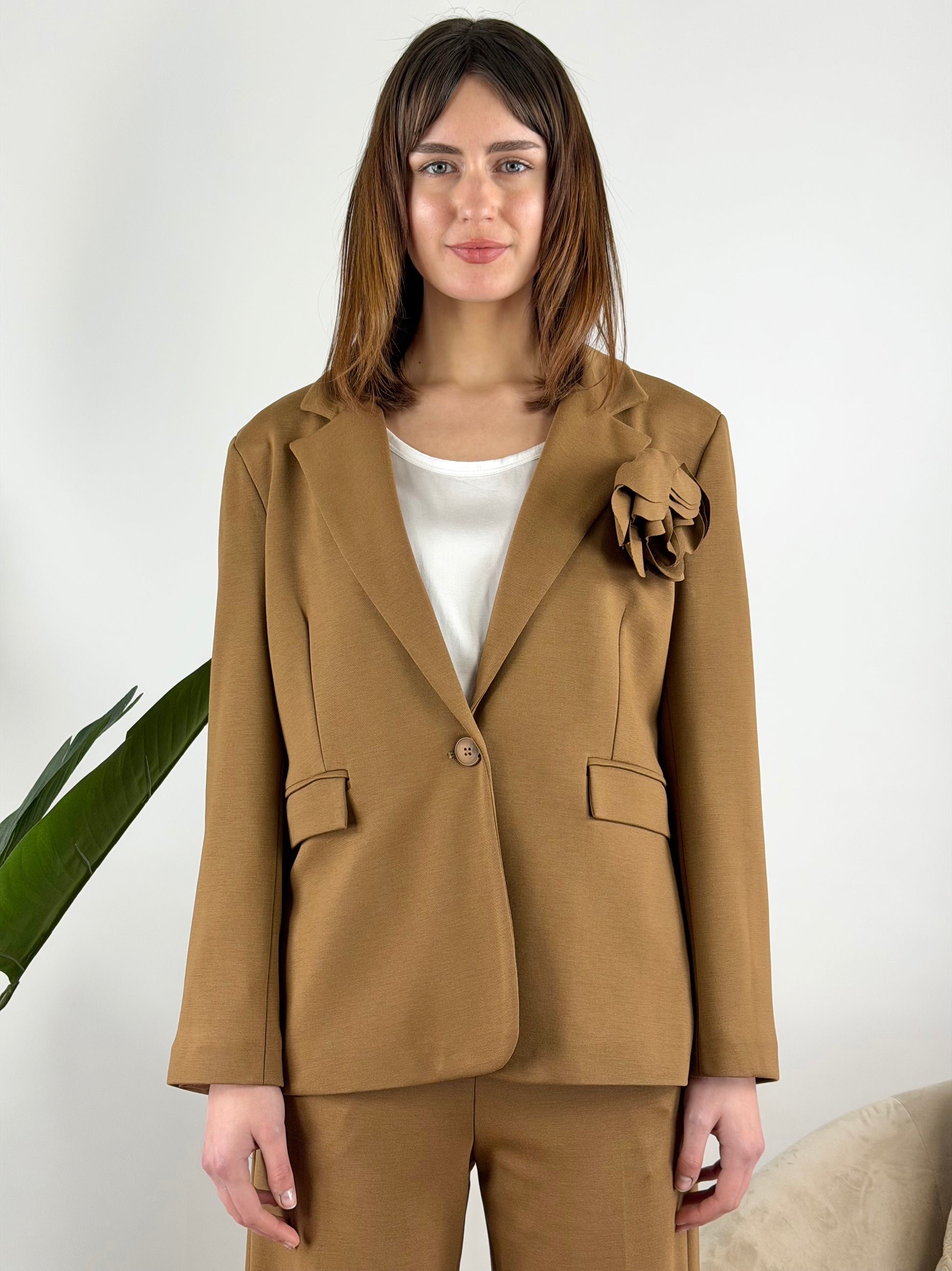 - Giacca in punto Milano elasticizzato con spilla