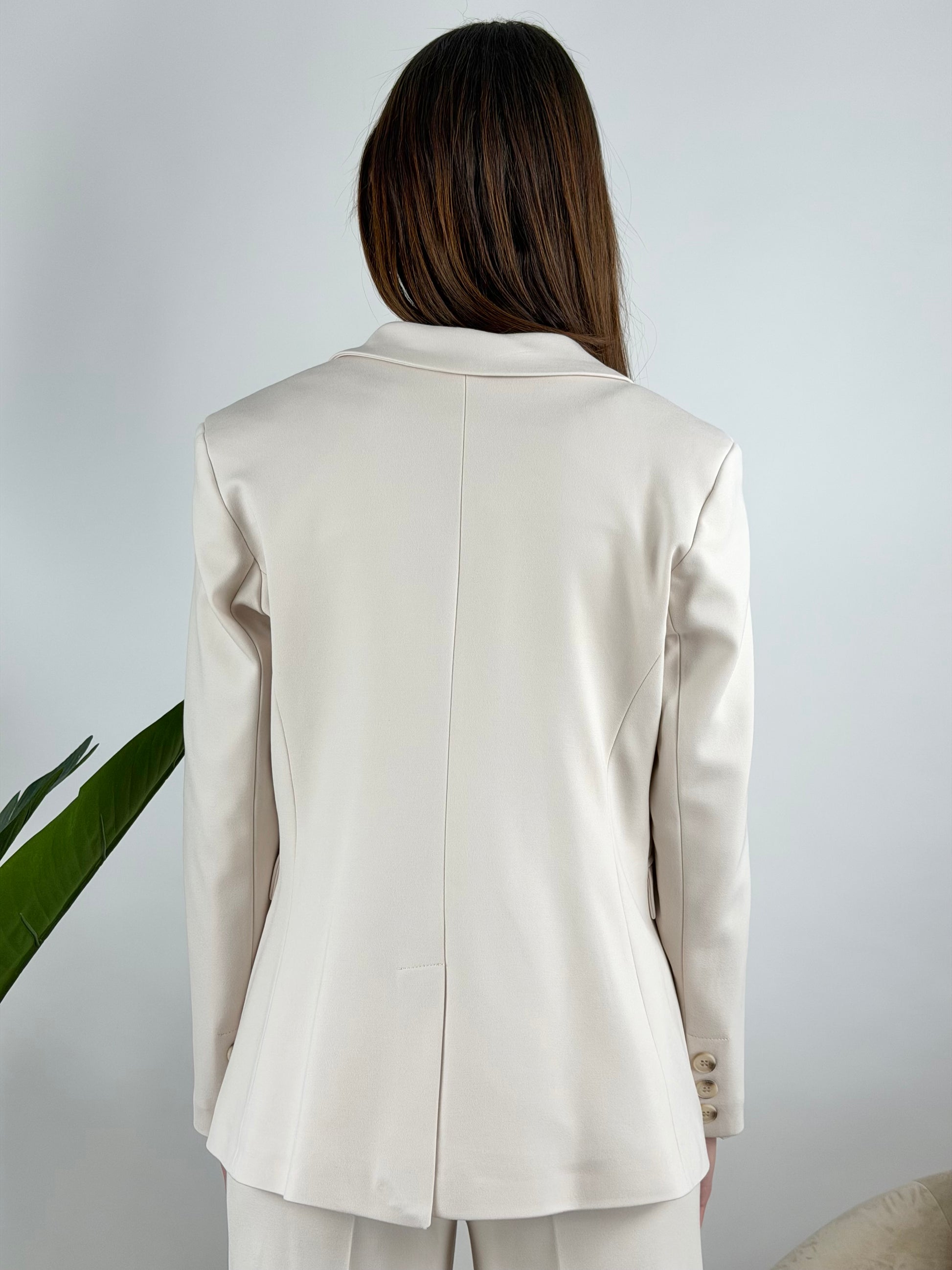 - Giacca in punto Milano elasticizzato con spilla