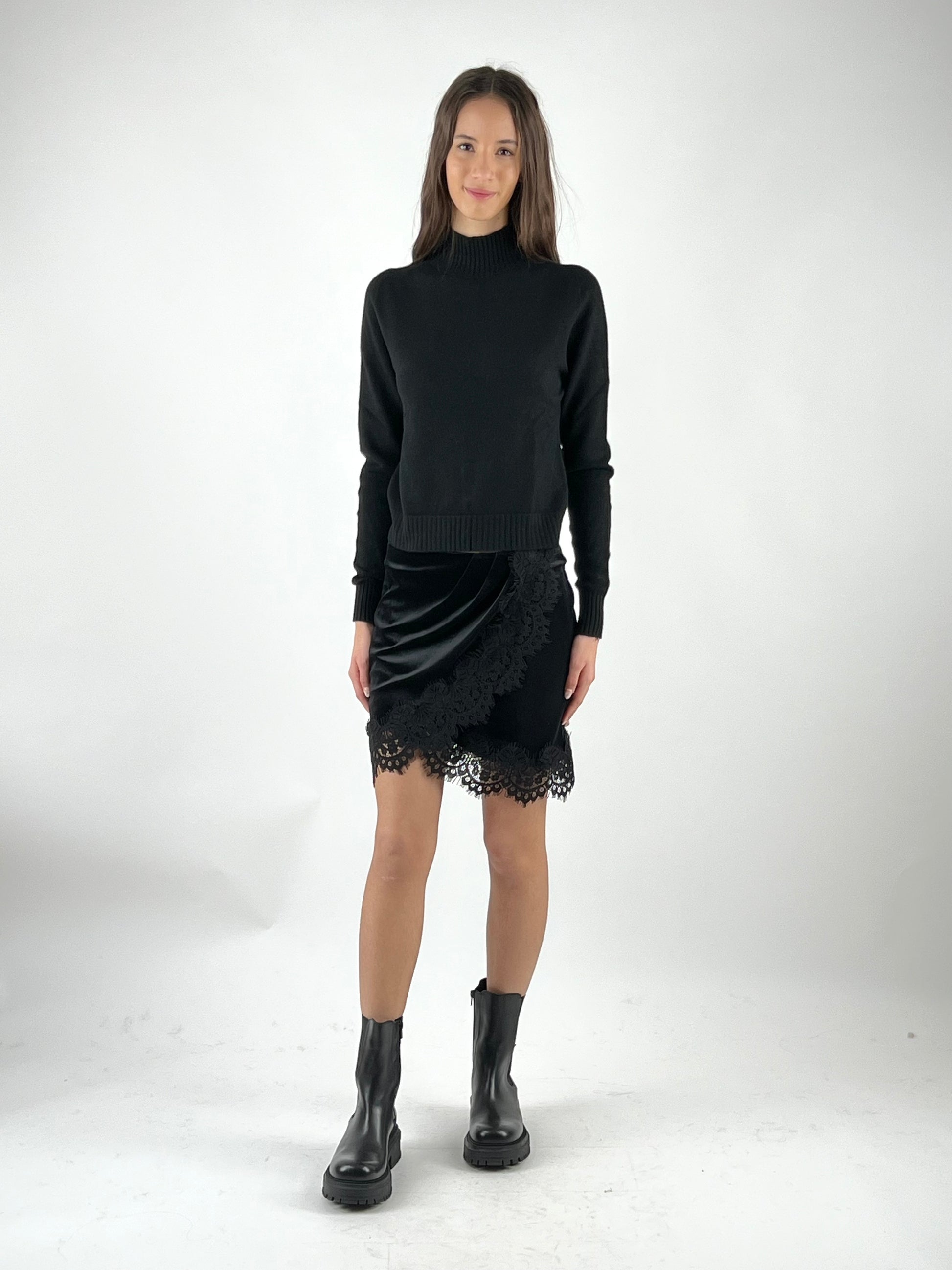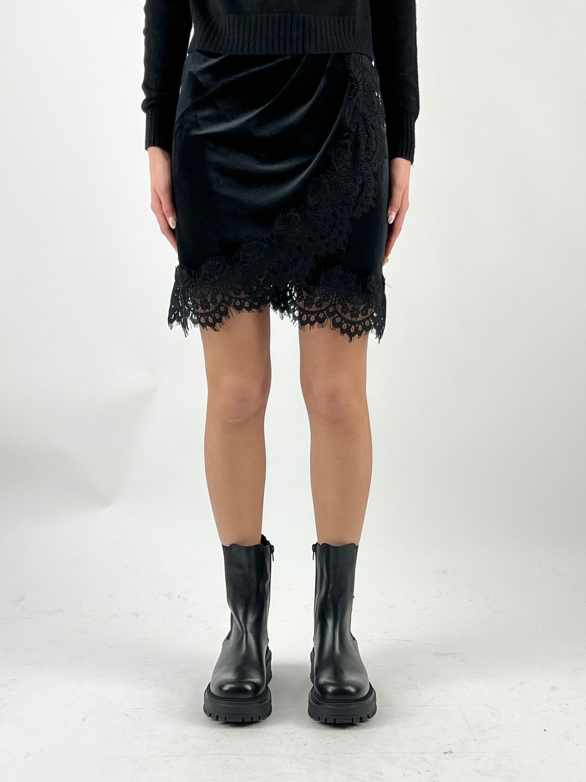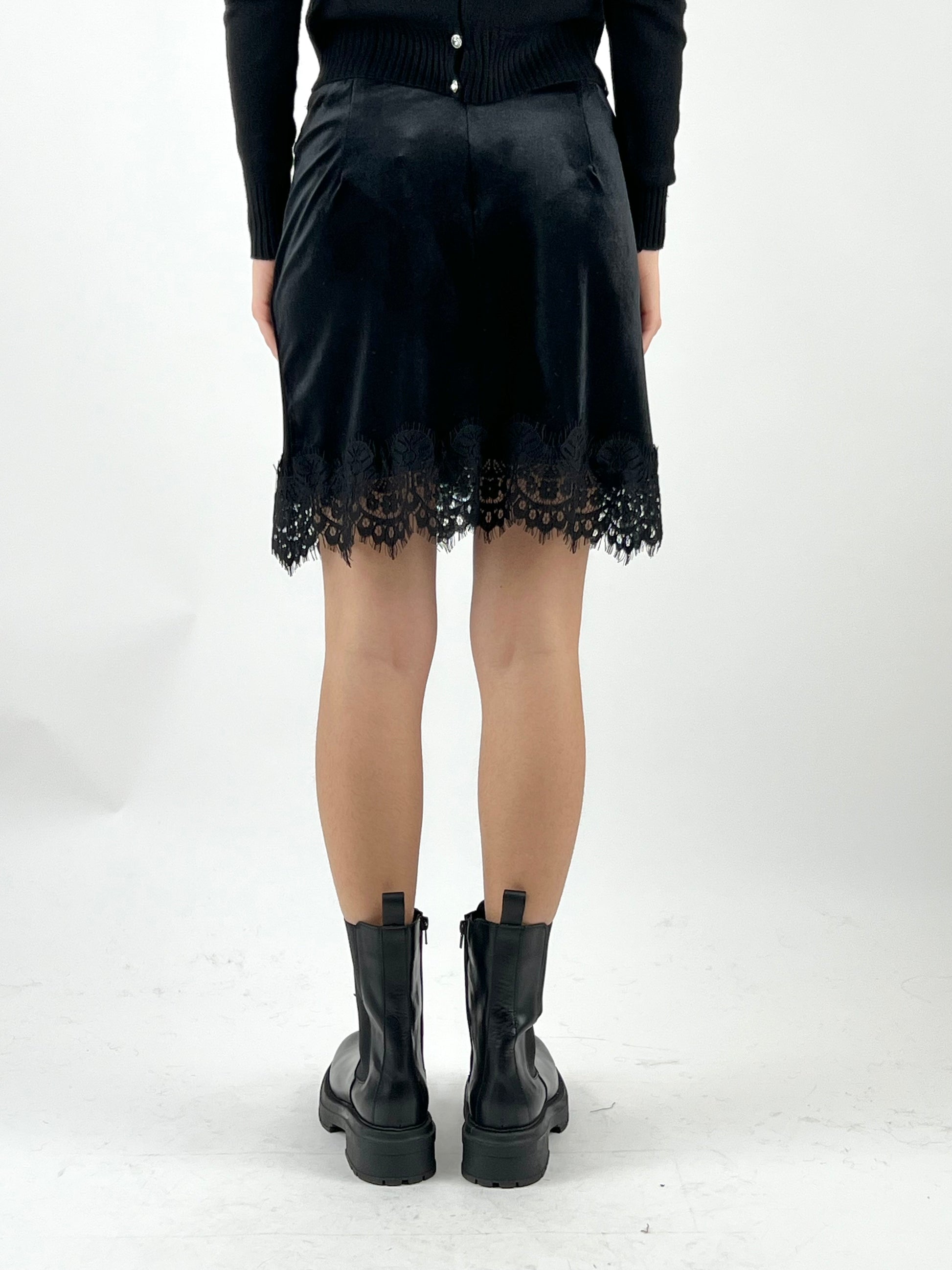 - Gonna in ciniglia con bordo in pizzo e zip posteriore