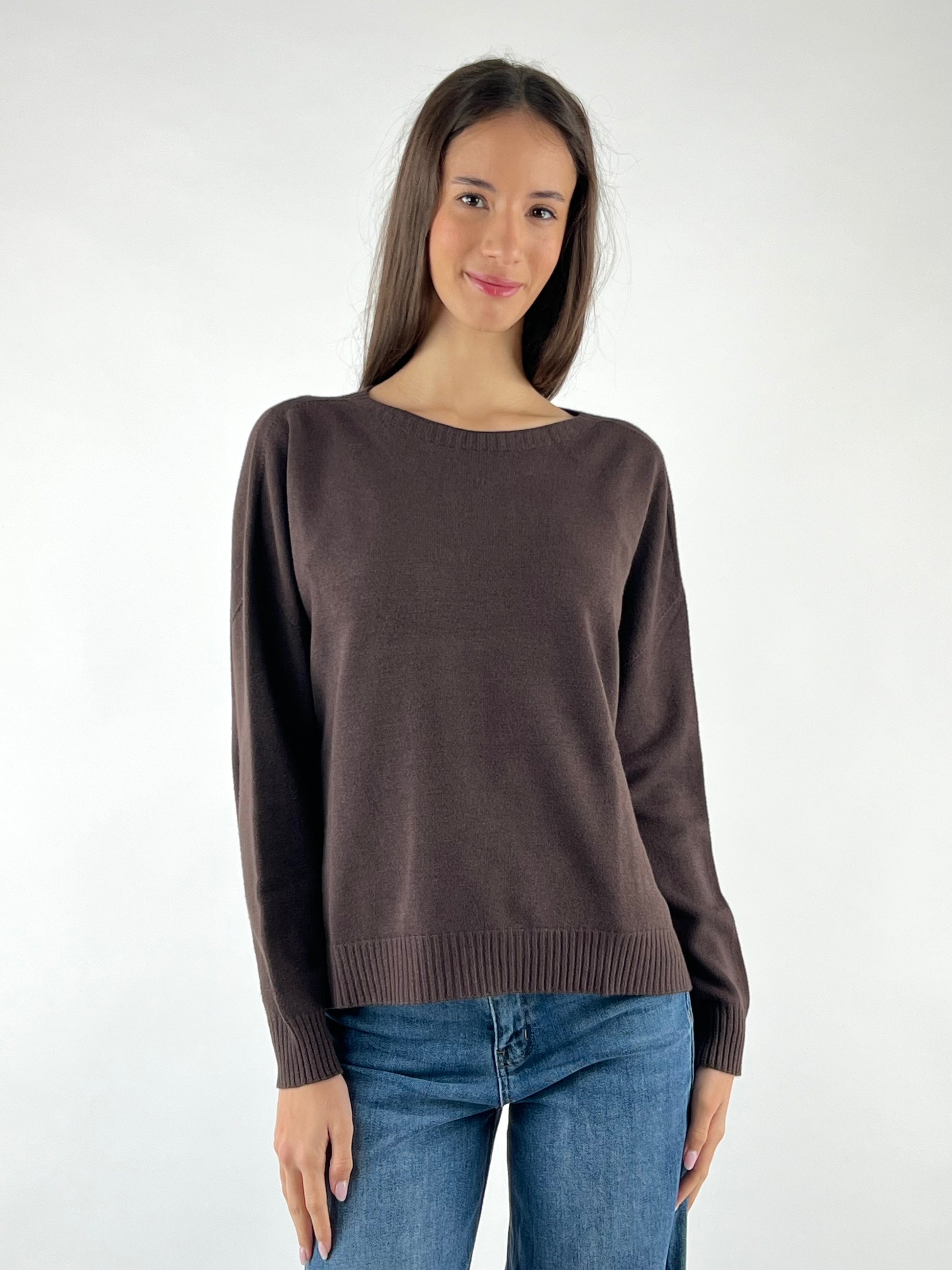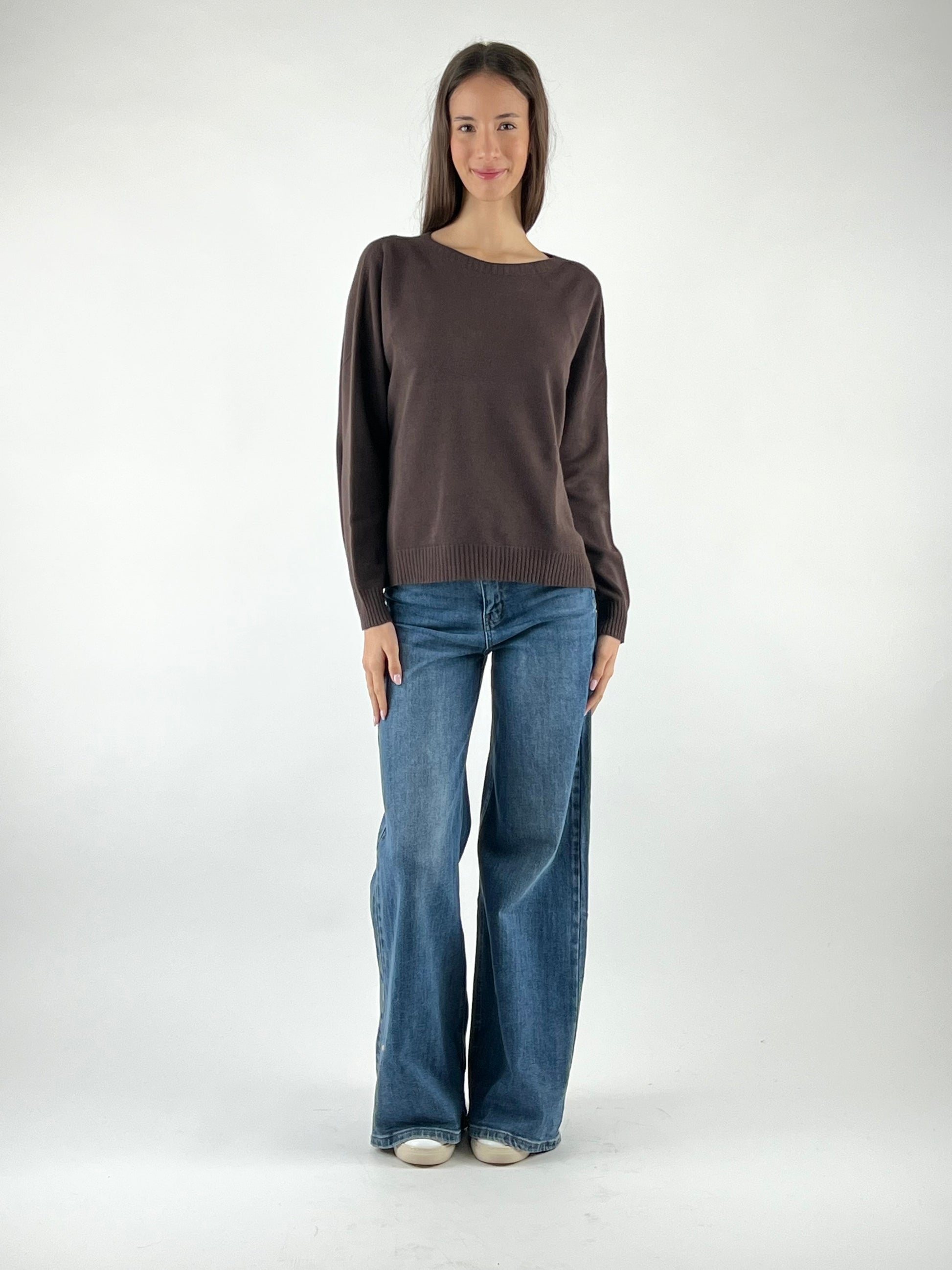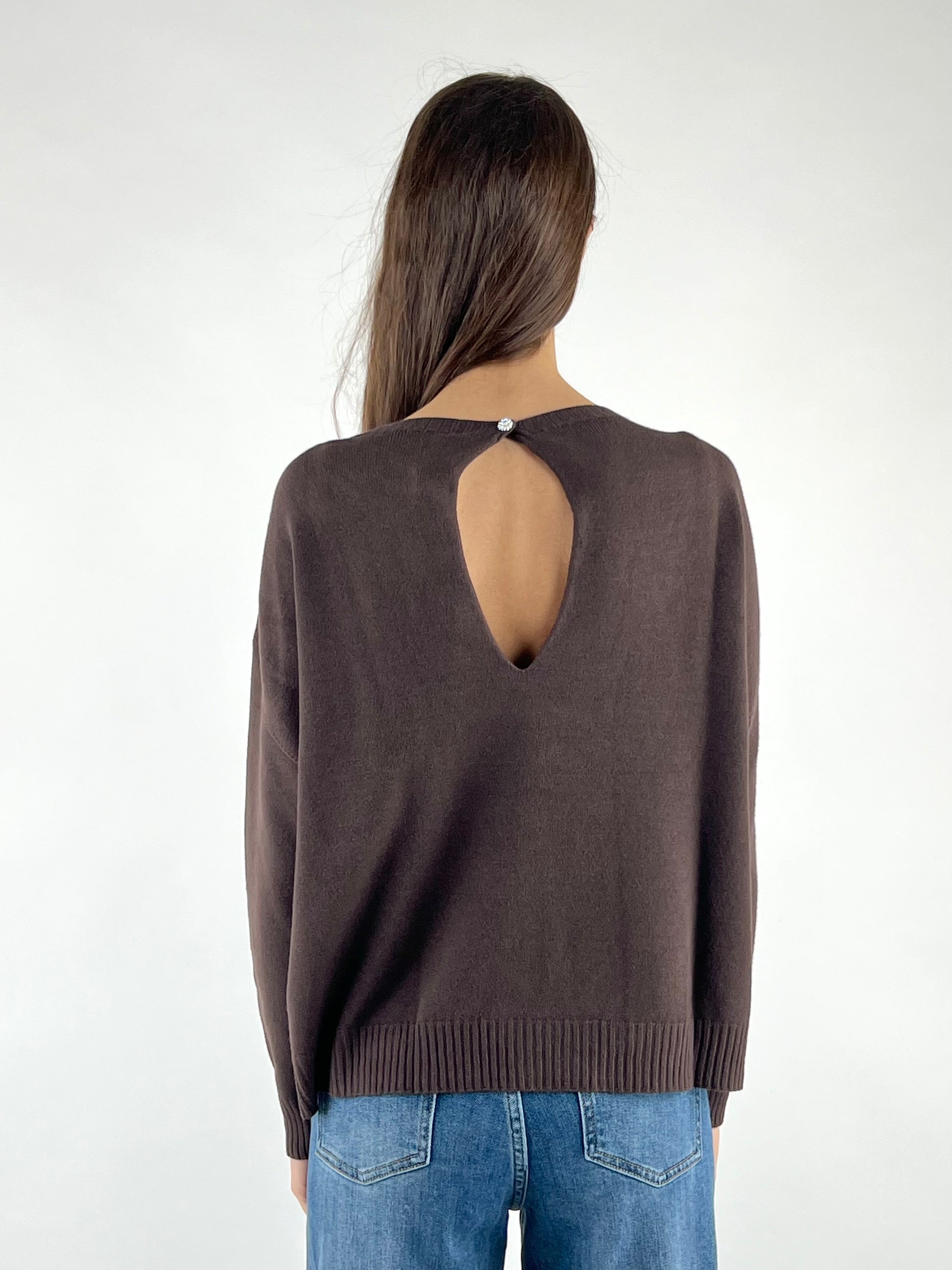 - Maglia girocollo con goccia posteriore e chiusura bottone strass