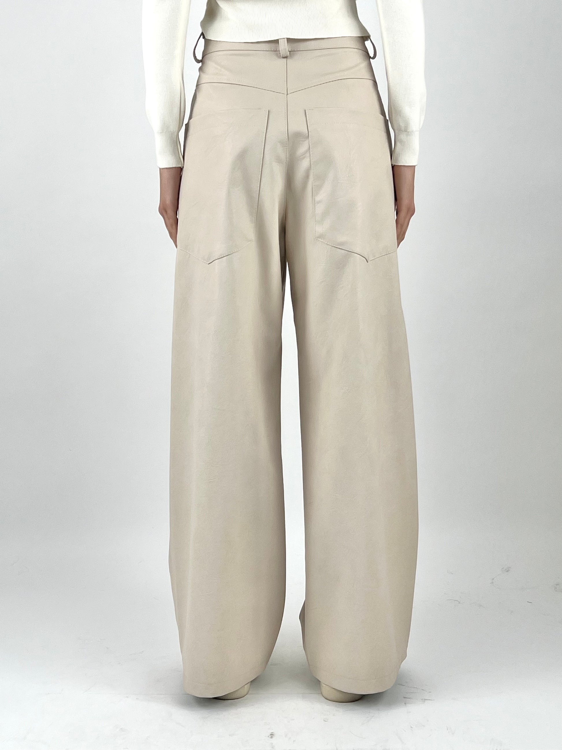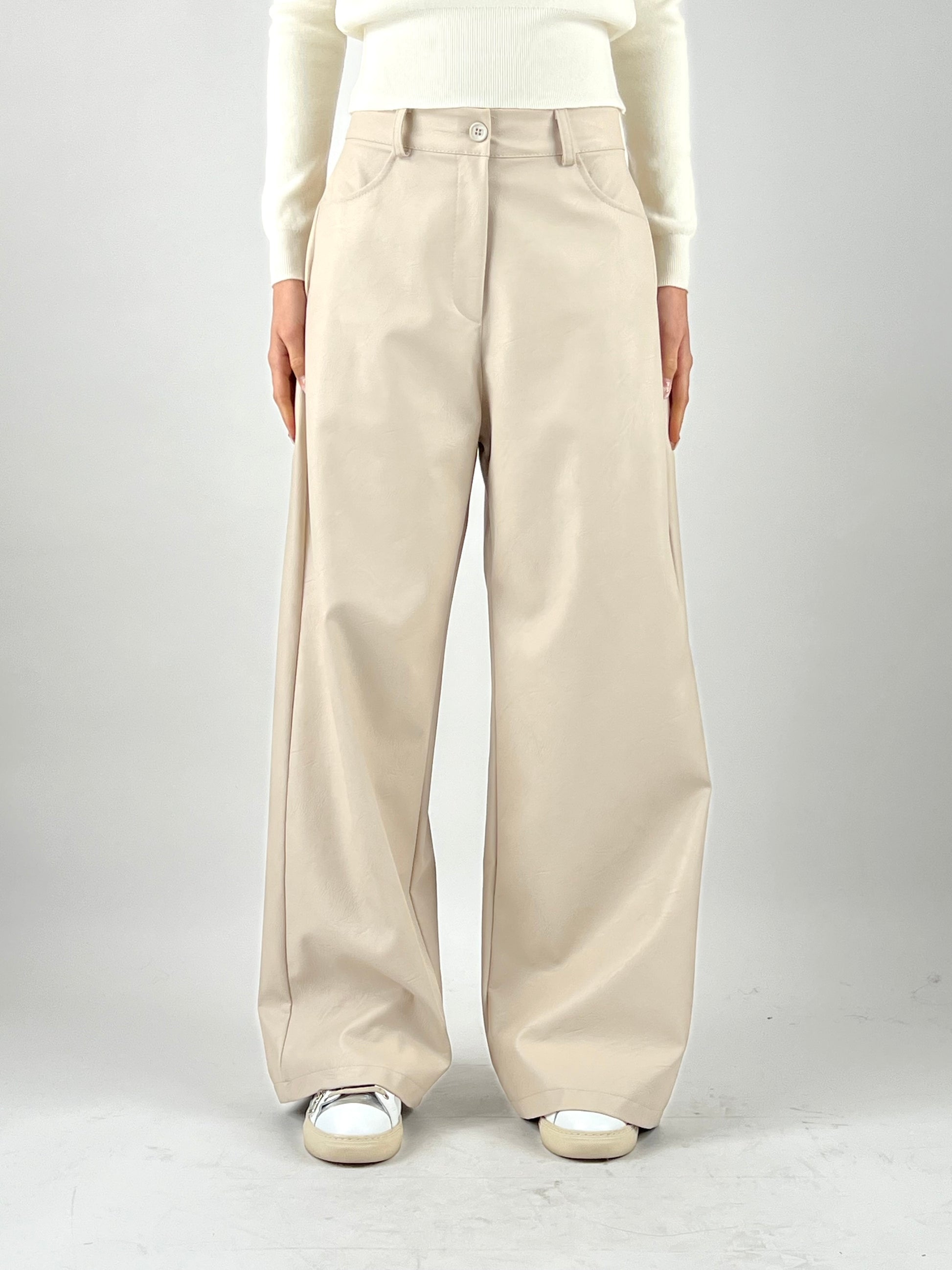 - Pantalone in ecopelle con gamba a palazzo e tasconi