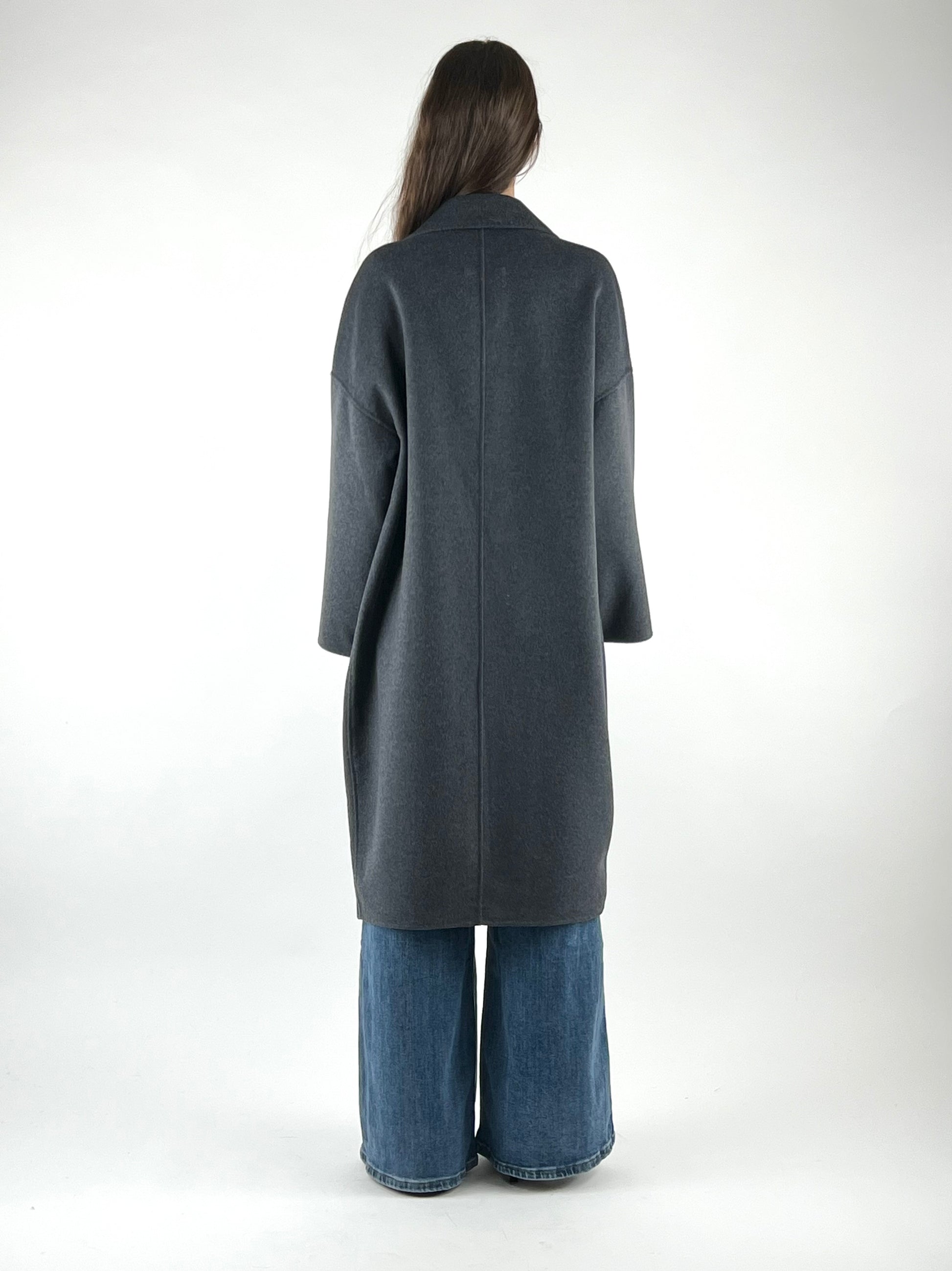 - Cappotto doppiopetto con taglio ovetto e tasche laterali realizzato a mano