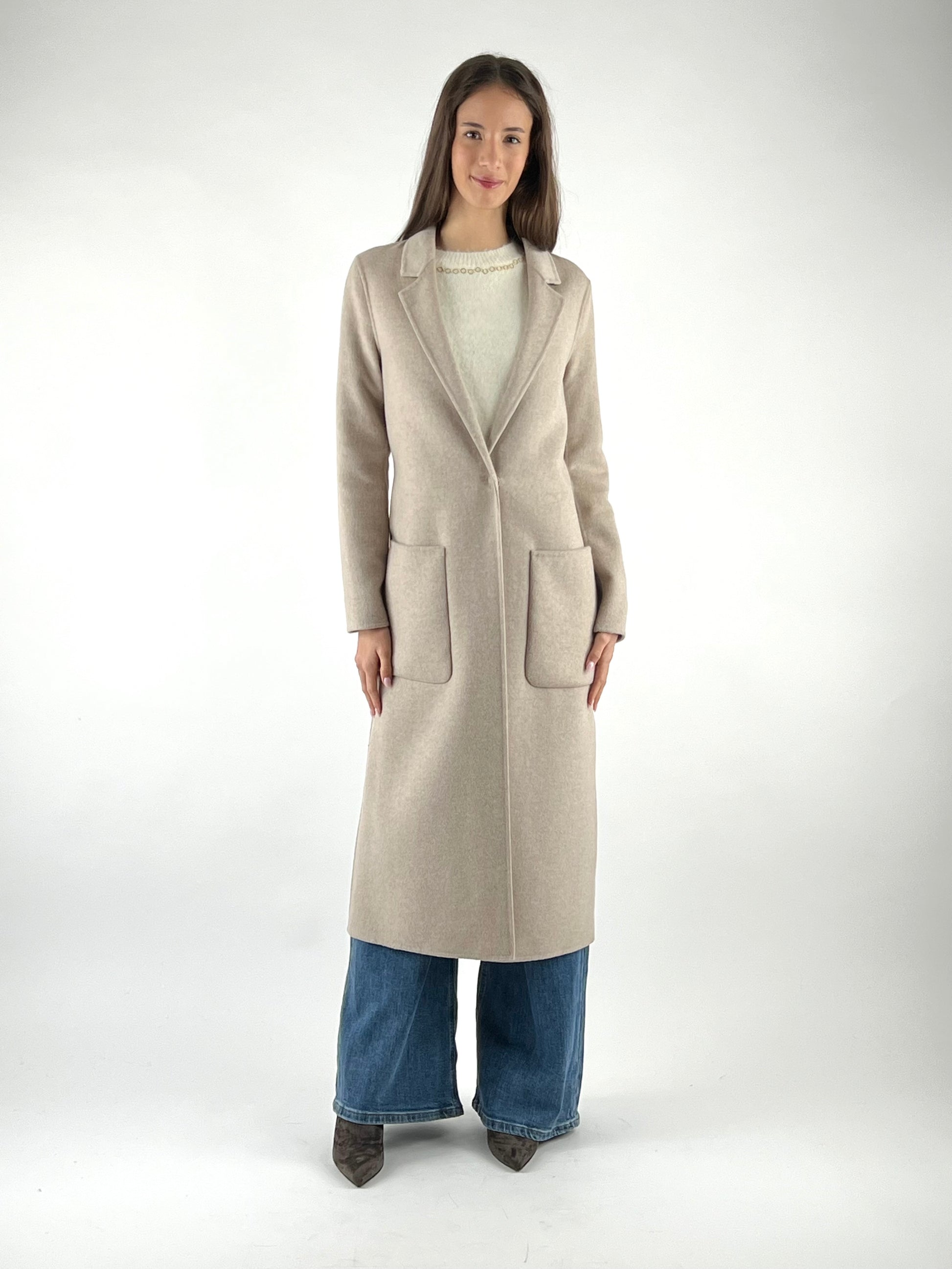 - Cappotto monopetto con tasche frontali, bottone a pressione realizzato a mano